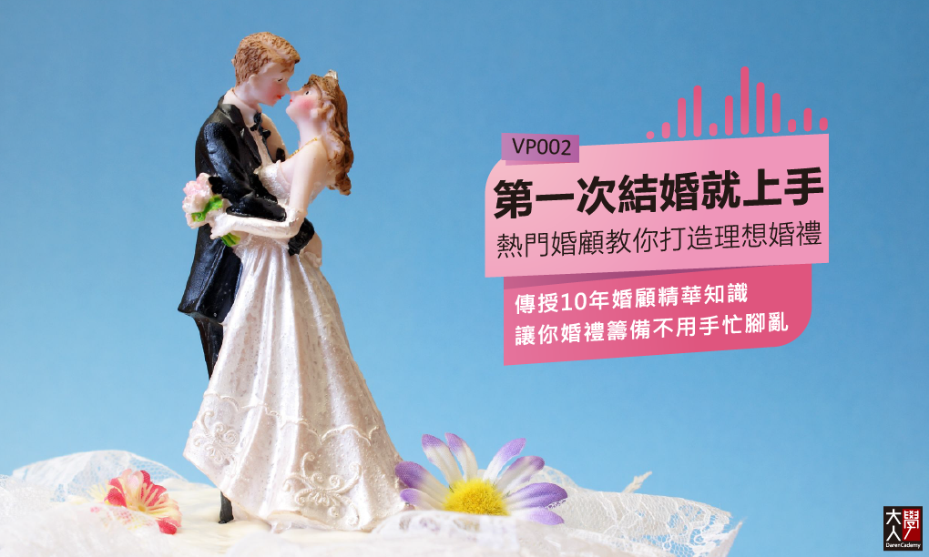 談戀愛是兩個人的事,結婚卻很有可能是兩家人的事,因此當你決定踏入婚姻,就必須明瞭在每一個甜蜜的婚宴背後,可能都藏著數不清妥協與眉角,往往一個環節出了問題,家人間的感情將大受影響。為了解決大家籌備終身大事的困擾,大人學團隊特別聘請擁有上百場婚禮主持與顧問經驗的Vicky老師,來談談許多婚禮規畫時會遇到的問題,如怎麼和長輩溝通?如何挑選婚紗、場地?婚禮當天會有什突發狀況?讓新人們度過籌備時的烏煙瘴氣,打造一場銘記終生的浪漫婚禮。