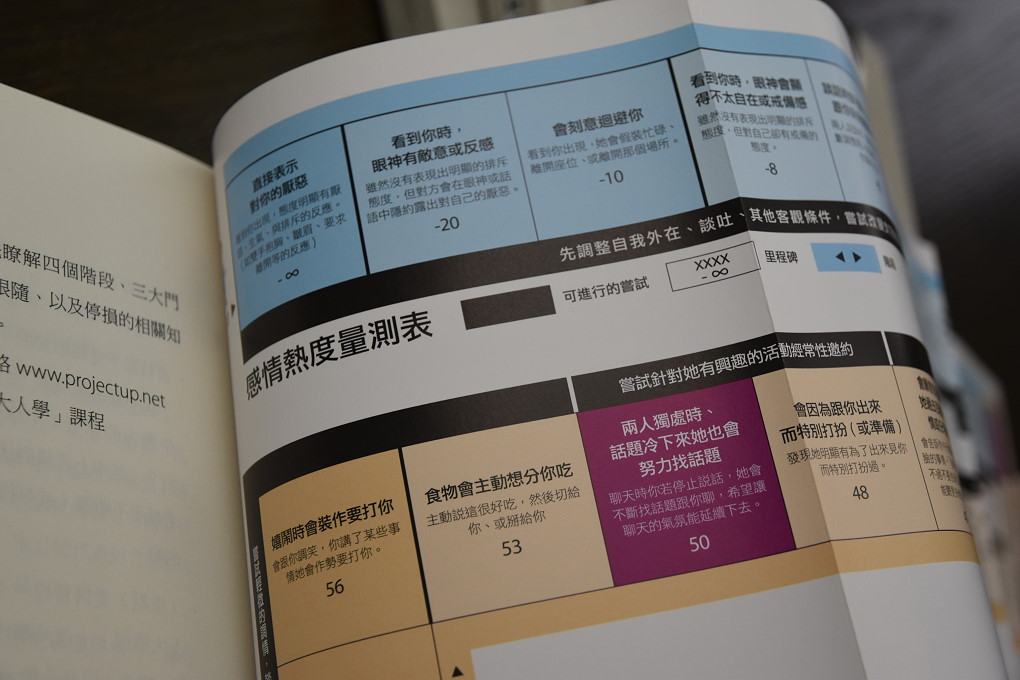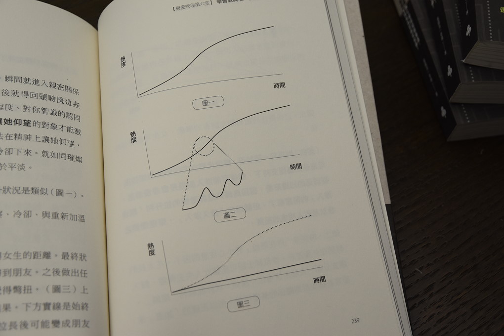 整本書盡量以結構化、數值化、圖表化的方式解釋女性的心理轉折,以及兩性戀愛的熱度轉變。 就算你不擅長戀愛,也能照表操課、按圖索驥。