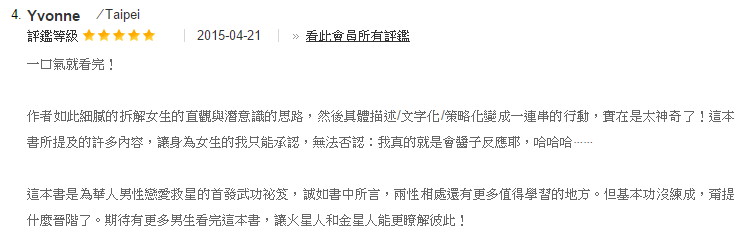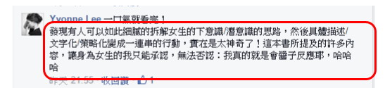 - 看過的女生都說:「真的把我的內心轉折都清楚描寫出來了!」