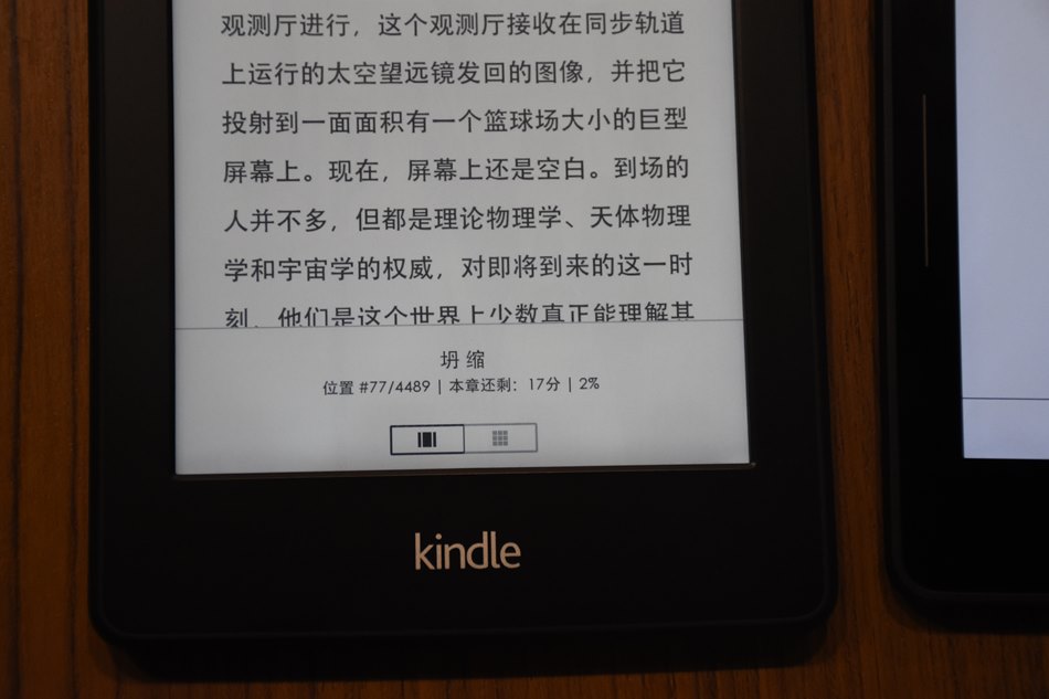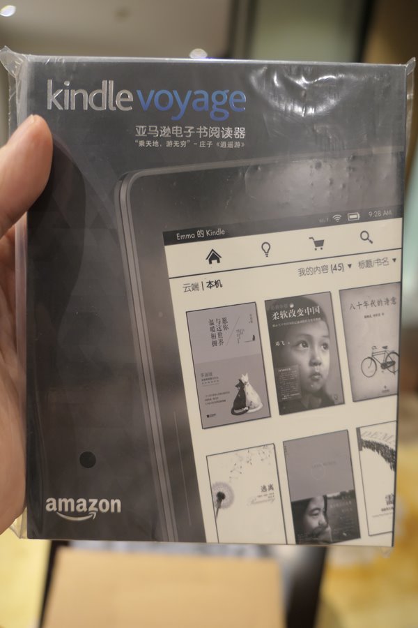 只是開始買簡體書後,我發現一台Kindle只能跟一個帳號同步。要就是選擇美帳,不然就是得選擇陸帳。而早年的機種,如Kindle Keyboard或是Kindle DX,因為軟體沒有支援中文,所以根本無法跟陸帳同步。 最後逼得我只能在我其中一台iPad上面裝Kindle軟體,並以此跟陸帳同步。但如同前面講的,iPad因為背光刺眼,閱讀起來還是有點累,所以就有考慮要多買一台Kindle。一台同步美帳,一台同步陸帳,感覺就可以兼顧了。這次剛好我有個去大陸的行程,又碰到Kindle有折扣,所以就在行前下單買了Kindle Voyage。