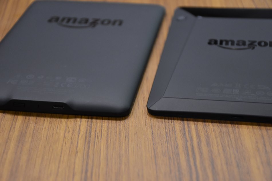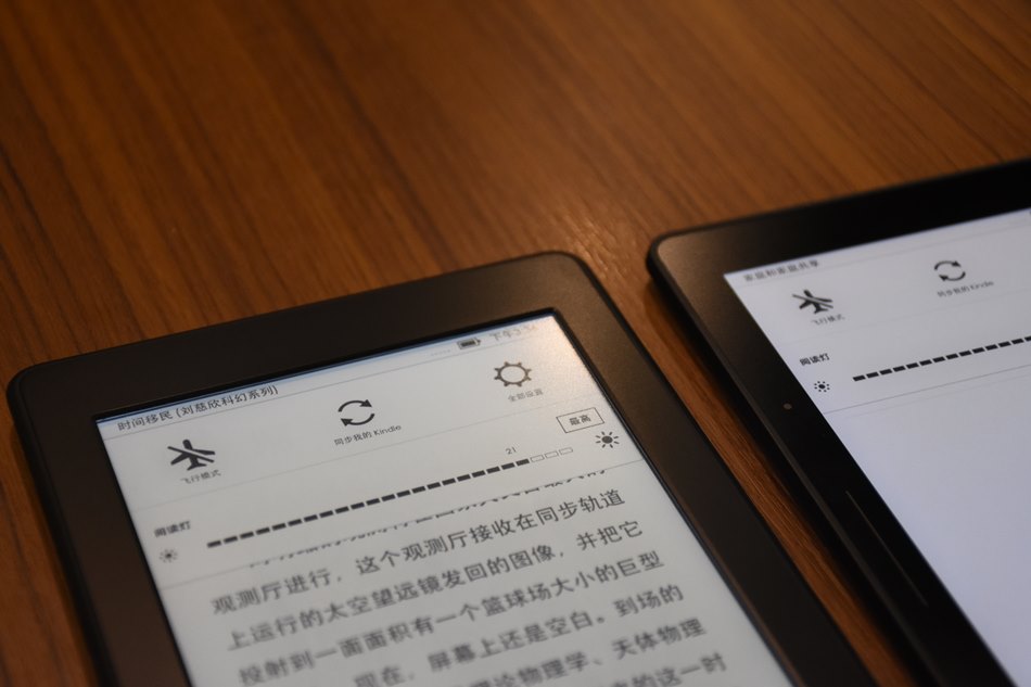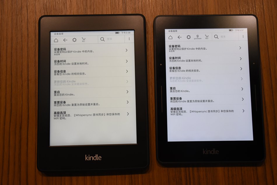 (左邊是Paperwhite,可以看到黑框跟螢幕是有一個下凹的距離)