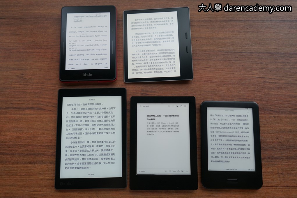 我先說在前面,我自己會買這麼多台,就因為其實真的很難只買一台。比方說iPad當然功能最強,可是功能強其實反而妨礙閱讀。尺寸大的機器當然爽感就高,可是重量跟尺寸也造成攜帶不方便。加上因為各家電子書平台都有自己的格式或是帳號,除非你願意做些轉檔或是調(ㄆㄛˋ)整(ㄐㄧㄝˇ),不然只用一台總是麻煩,所以我才買了一堆。