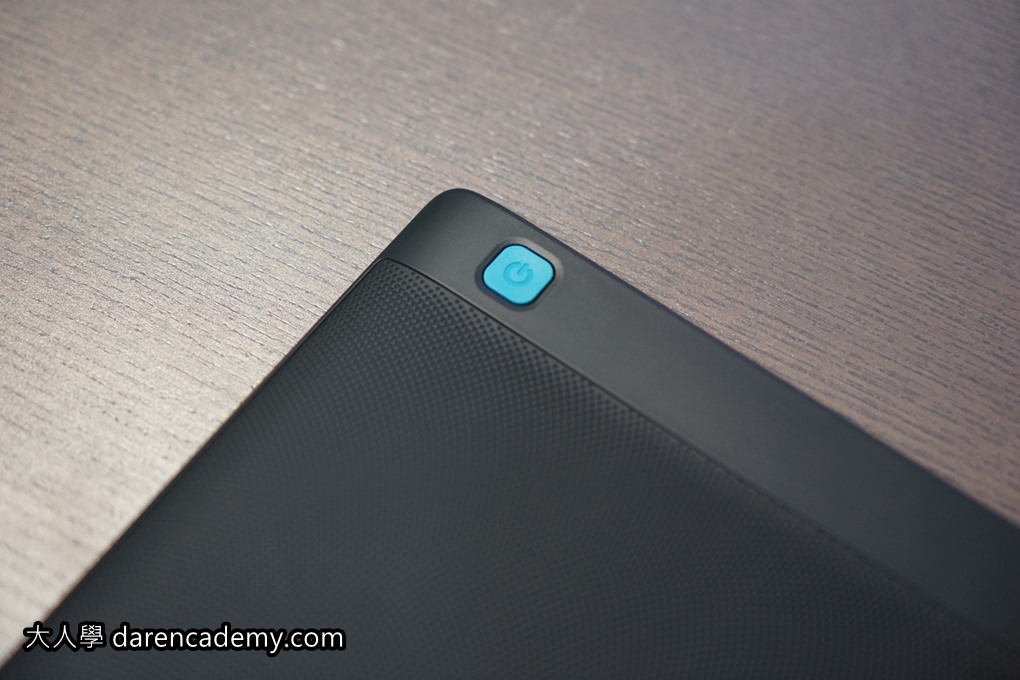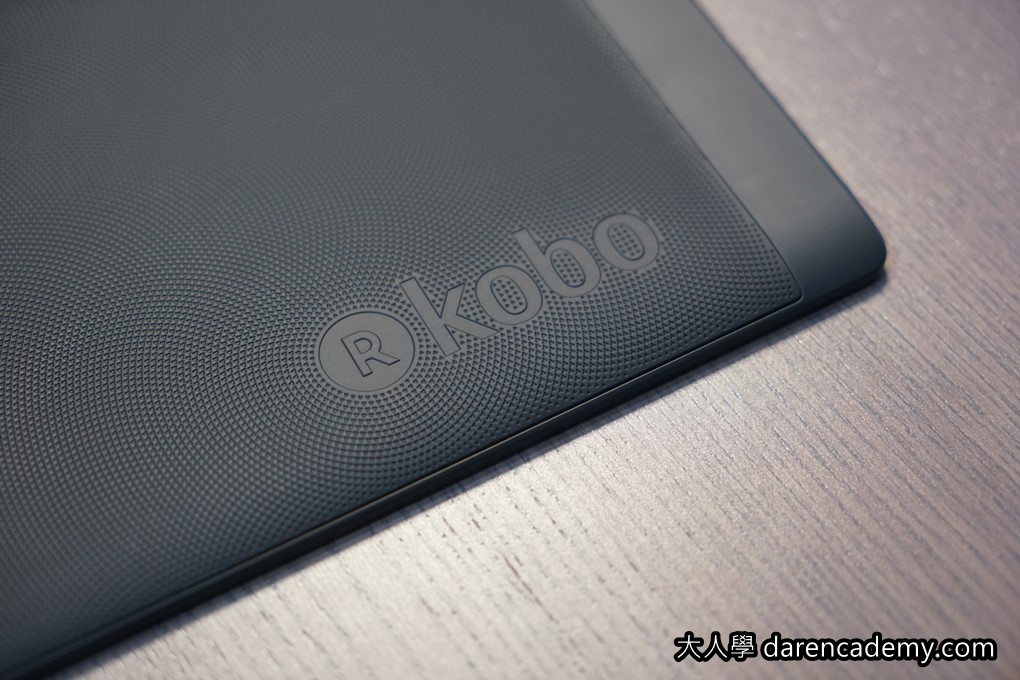 Aura One 背後有Kobo的LOGO字樣,電源開關則是在背後的藍色按鈕