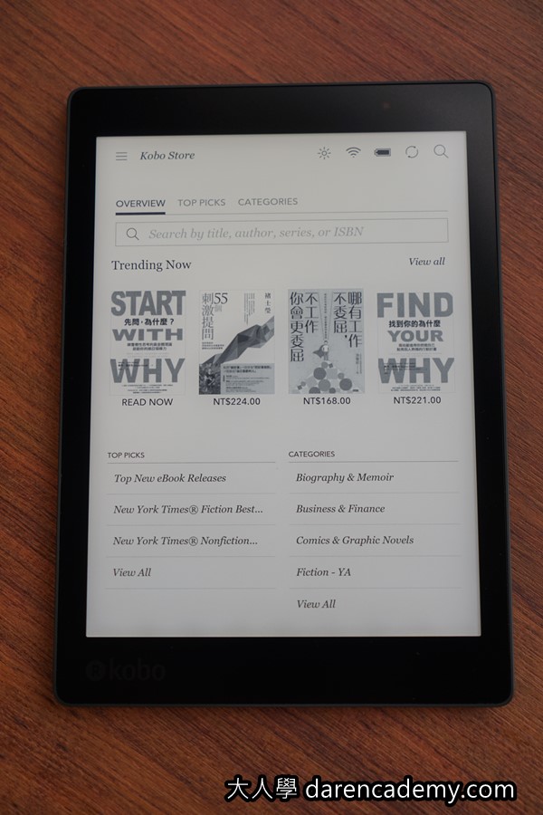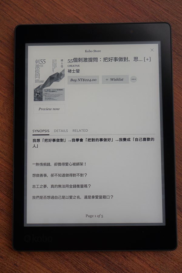 8.但如果你讀的通常是圖文書(如旅遊書之類),那我覺得8吋的閱讀器都有點辛苦。我自己也有一些Kobo的圖文書。這類書通常都有彩色,在電子紙上看當然就只有黑白。而且如果字多的話,在閱讀器上會覺得字很小。所以這類書,我通常都在iPad上面用APP開啟。所以囉,如果你買書都是圖文書多,那目前這些閱讀器可能對你而言都不實用!而且,閱讀器考量電子紙的反應速度,你真看圖文書可能會覺得翻頁慢,體驗也會很差的。