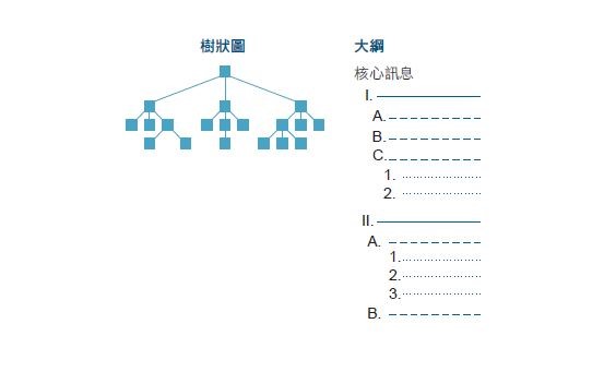 簡報最廣泛運用的是「主題型」結構。樹狀圖和大綱是幫助把結構視覺化的常見方式: