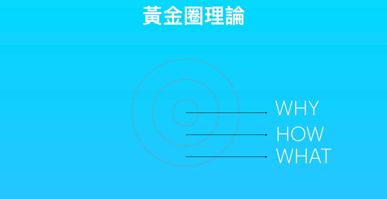 黃金圈理論是由知名講者 Simon Sinek 提出。他指出,成功的品牌或者故事(如蘋果),都是藉由把重點放在“WHY”,創造出消費者心中的心像以及跟其他競品的差異化。
