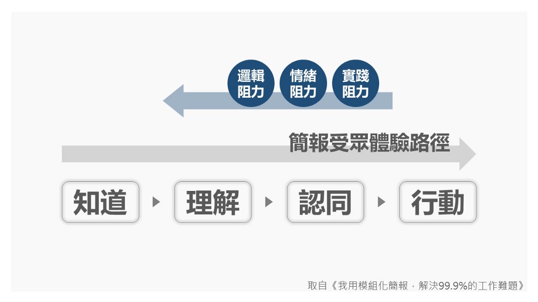 這些影響簡報成效的阻力分別是:邏輯阻力、情緒阻力、實踐阻力。