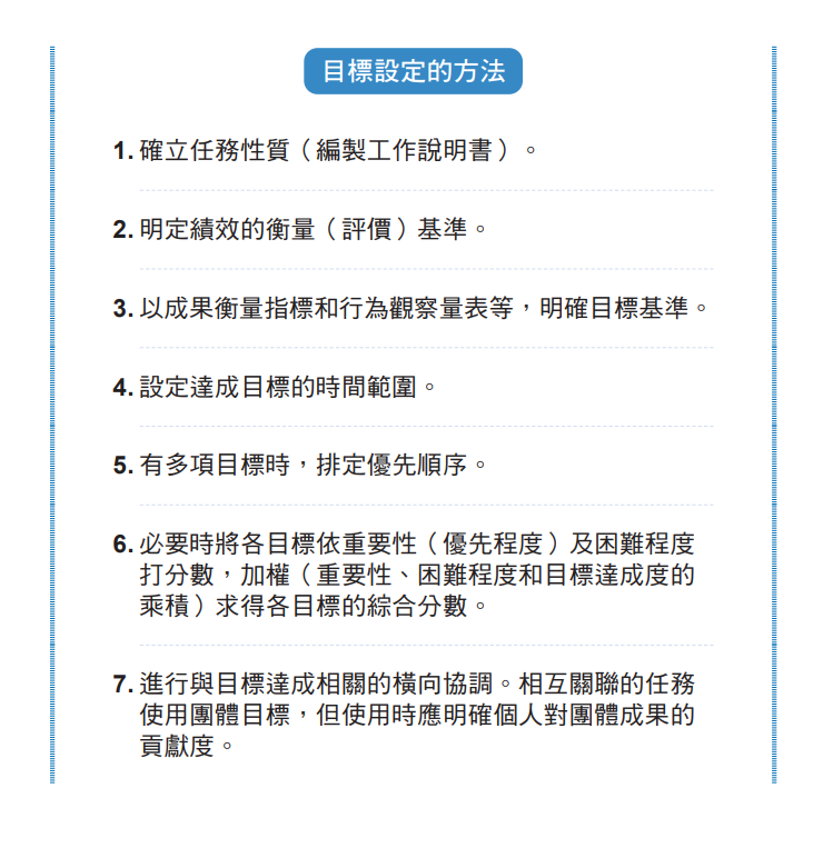 歐美成果主義傳入日本後,目標管理(Management by Objectives,MBO)也開始在社會普及,其後根據的就是「目標設定理論」。這是有關設定目標、目標設定方法,如何影響士氣和成果的理論。