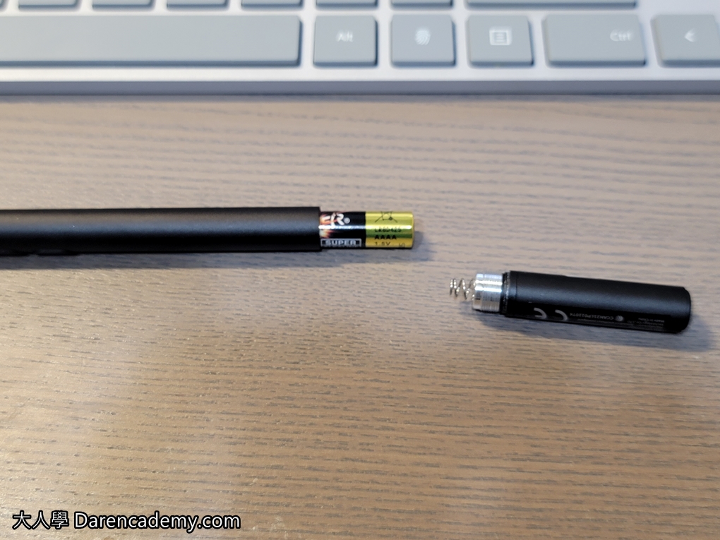看到這邊,你可能詬病筆「要放電池」這一點!但以我用過許多手寫筆設備的經驗來說,我個人其實是喜歡電池的。因為充電式的容易沒電,有時候一段時間沒用、可能無意間放在旁邊太久,要用的時候發現沒電。你還得等著它慢慢充電。電池雖然也會沒電,但其實一顆電池可以撐很久,若久久換一次反而沒這麼困擾。