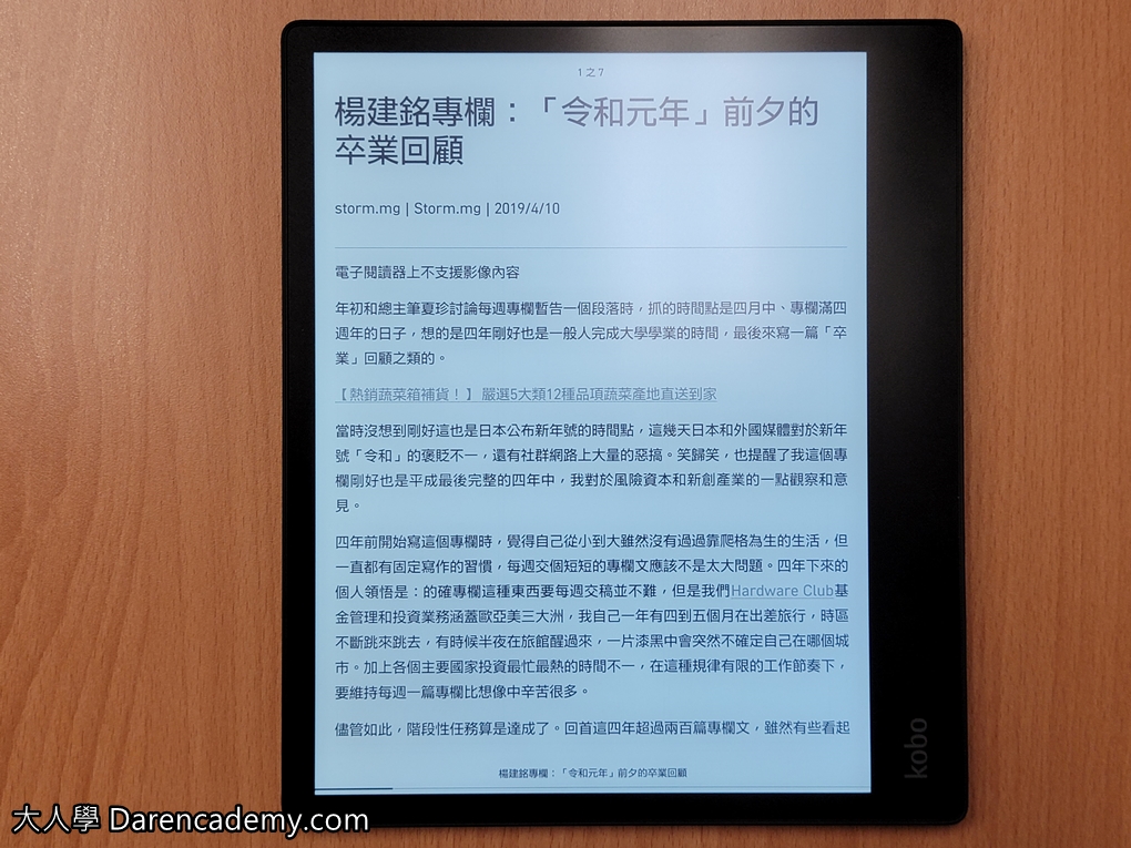 所以挑選電子書有個原則,買大不買小,而且越大越好。大的閱讀器,你看管理書適合、看漫畫適合、你要讀PDF的論文也適合。
