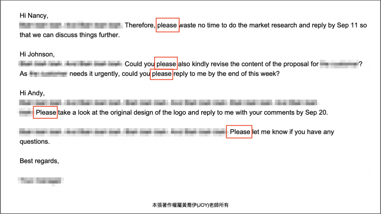 那麼像這種一堆「請(please)」的問題又該如何解呢?以下讓喬伊用實務上常見的三種情境來說明。