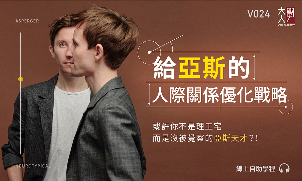 亞斯其實是非常普遍的特質,世界上高達 4-10% 的人口都或多或少有亞斯傾向,換句話說,你也可能是其中一位。當你有這樣的特質,最明顯的感覺就是人際關係總是受阻,大家笑成一片,你卻一頭霧水彷如局外人,可能也不時會與人起衝突,導致不快樂。如果這正是你面臨的困境,歡迎參考馬大元醫師這門專為亞斯族群打造的線上課程。