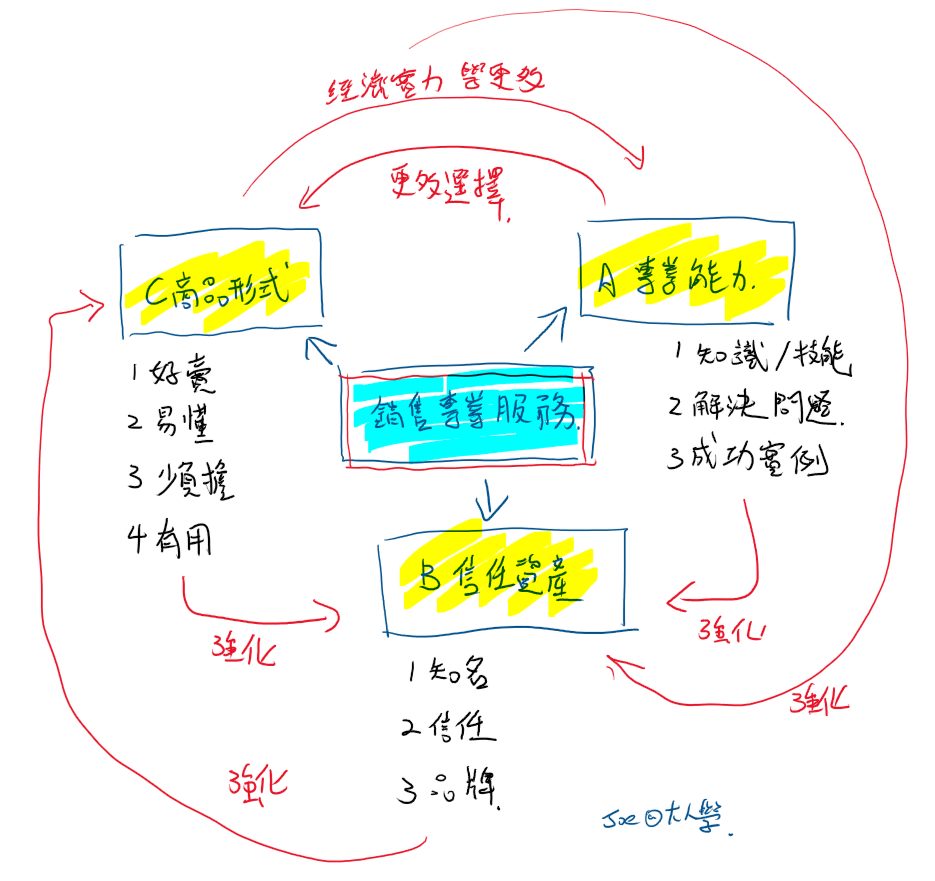 那這張圖的複雜版,我之前有做過一檔課,名稱就叫做【銷售專業服務的系統化做法】。是我自己從零開業至今的所有心法。我們現在可以低調地賣我們的專業服務、不受到新聞擾動、不用抱怨市場不懂專業價值,其實是有一番努力的。但這都是大家可以做到,也該做的事情,所以想更完整理解的,也歡迎可以參考看看。