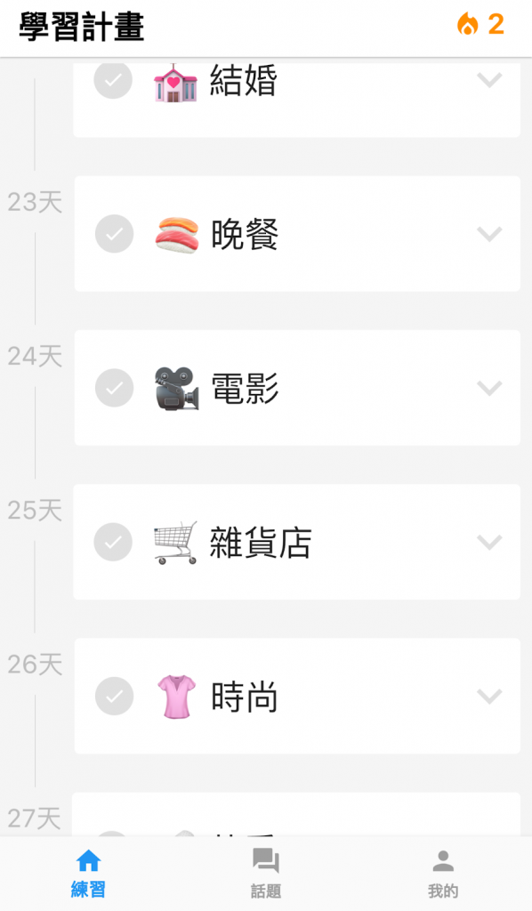 練習話題完整排程,輕鬆養成練習好習慣