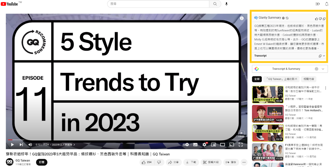 4. 看 Youtube 影片前,先使用 Glarity Summary、YouTube Summary with ChatGPT 這類的瀏覽器外掛,幫你快速掌握影片重點