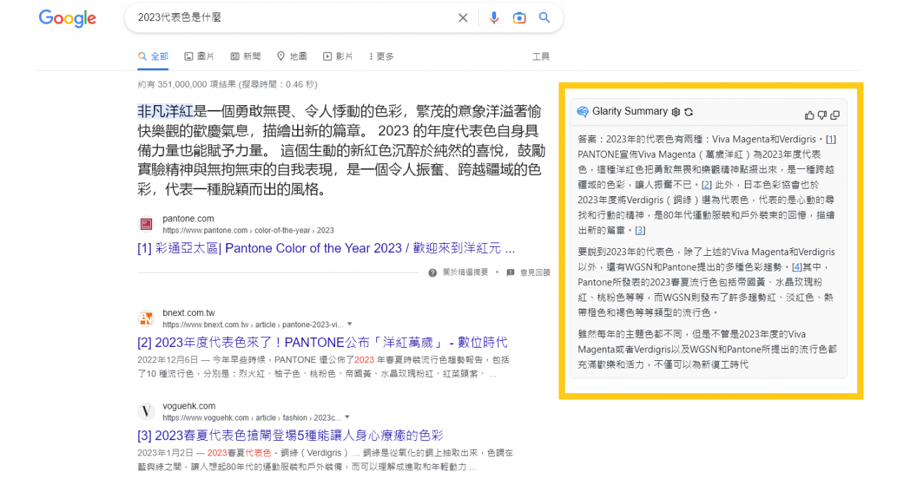 同樣的外掛也可以使用在 Google 搜尋中喔!甚至還會幫你列出資訊來源的網站。
