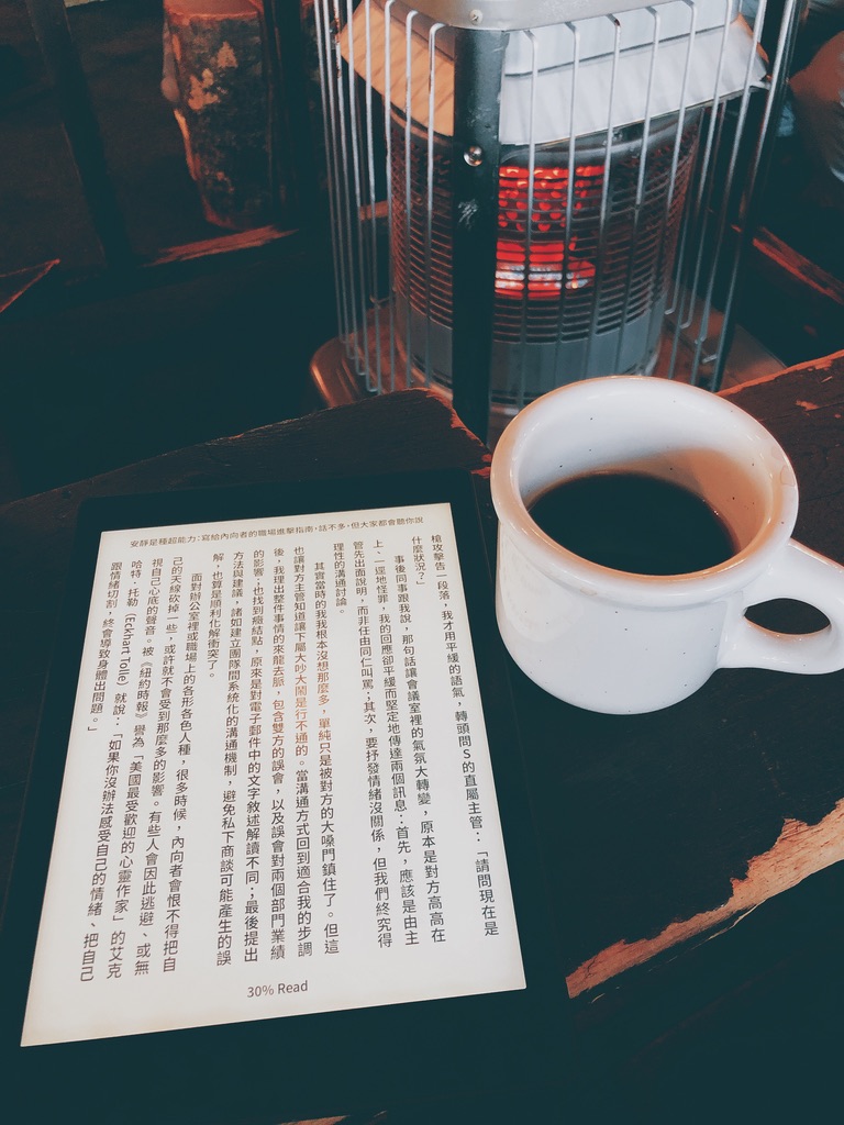 某年跨年造訪日本滑雪場,滑得痛快後再進室內、就著暖爐看書。(圖 / 李君婷提供)