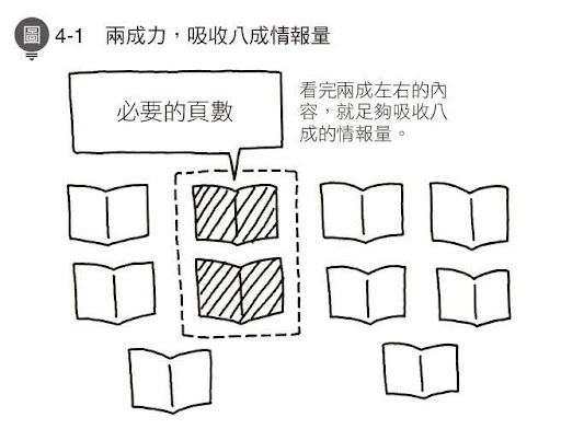 雖然,這樣一來會忽略到細節部分,但就算你逐字逐句地細讀,一年過後大概也沒辦法詳細地和別人說明細節。與其花時間專研沒辦法長久記憶的瑣碎部分,倒不如約略、宏觀地掌握內容就好。
