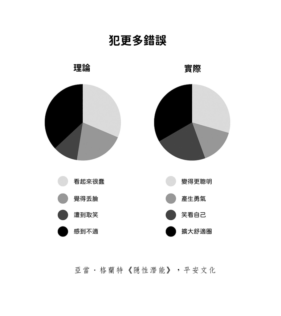 我們從小到大都被教導「不要犯錯」,才是值得被讚許的好孩子,但是《隱性潛能》的作者反而鼓勵你犯錯!害怕犯錯的心態很容易導致我們過度準備,甚至裹足不前,在這篇摘文中,作者會透過幾個實驗和例子讓你了解,勇於面對犯錯後的不適感,反倒才會加速你的成長!