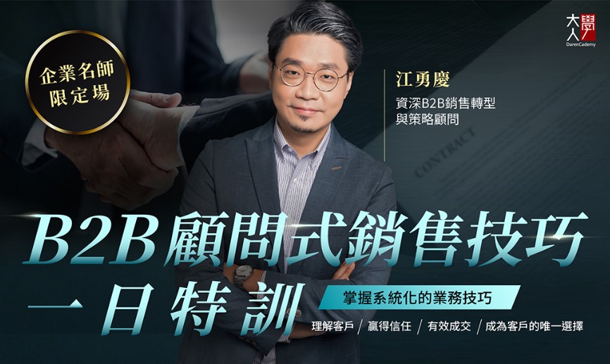 相關課程:【限定場】B2B 顧問式銷售技巧一日特訓