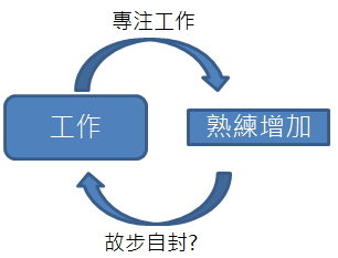 但我倒始終不太認同這樣的看法。 因為我覺得,人不管再怎麼專精於自己熟悉的工作,若不能時時培養新的知識與視野,工作能力還是可能越來越差的。 專精於工作雖然可以強化技能,如下圖: