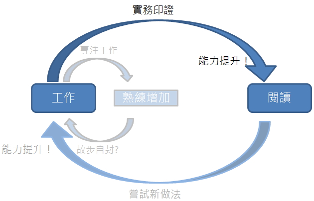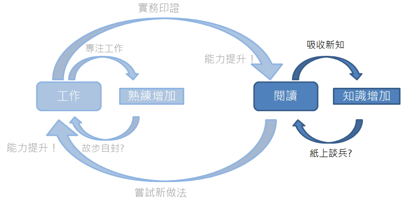 當然,也不能完全只是依賴閱讀,還是必須要有實務的印證,不然也可能淪為紙上談兵。 (如下圖)