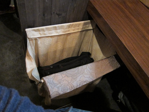 後來我去一風堂吃拉麵(好吃,大推!),看到了下圖這個籃子(忘了拍照所以跟別站借相片)。大家在外用餐一定也遇過這樣的經驗:身上大包小包,有時還拿著厚外套,卻沒有合適的地方放。日本店家只不過在地上擺個籃子,上面鋪塊布讓客人放東西,問題就解決了!